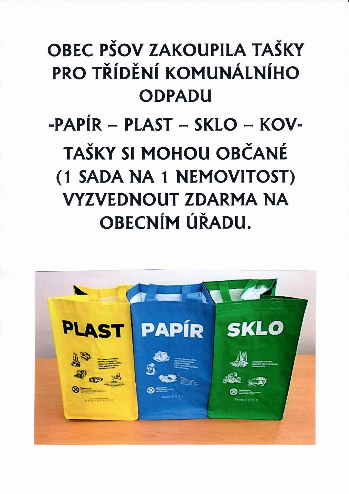 Úvod > Obec Pšov > Aktuality > Tašky na tříděný odpad - pro občany
